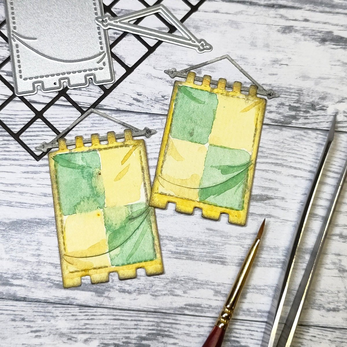 Medieval flag die set MEDELTIDA FLAGGA from Gummiapan ca 30x45 mm och 37x12 mm
