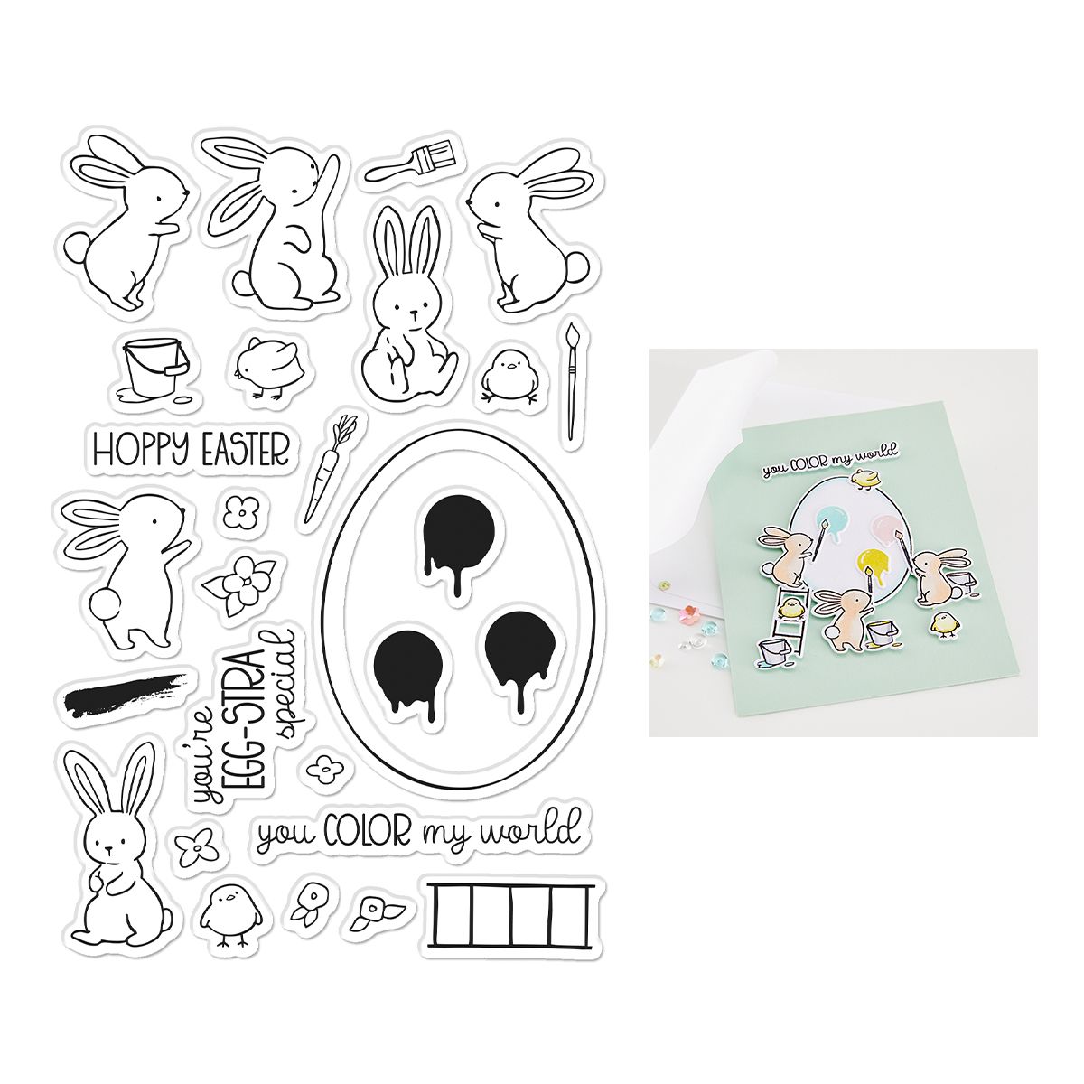 COLOR MY WORLD EASTER BUNNY CLEAR STAMP SET from Hero Arts A6