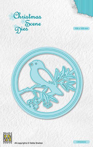 Bird on branch Christmas Scene Die Round frame from Nellie Snellen 10,8 cm in diameter