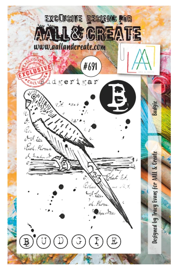 #691 Budgie bird clear stamp set from Tracy Evans AALL & Create A7
