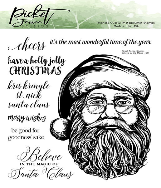 Believe in the magic santa + texts clear stamp set from Picket fence studios 15x15 cmcheers