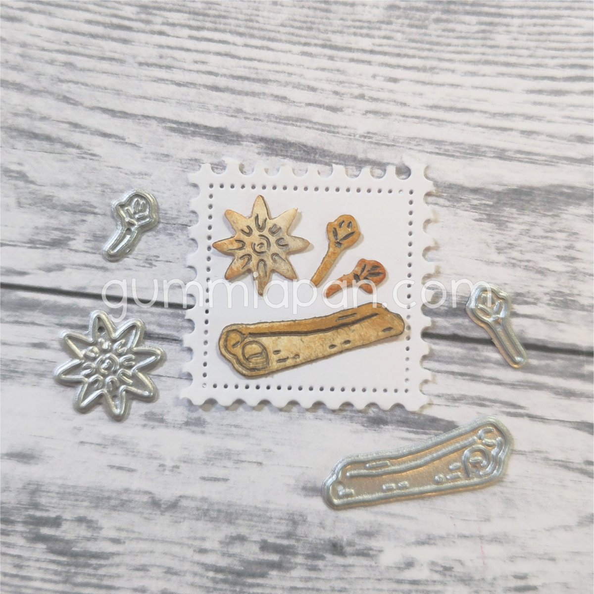 SMÅ JULKRYDDOR CHRISTMAS SPICE DIE SET - Stansmallar från Gummiapan ca 12,5x13 mm, 10x4,5 mm, 6x7 mm, 22,5x11 mm