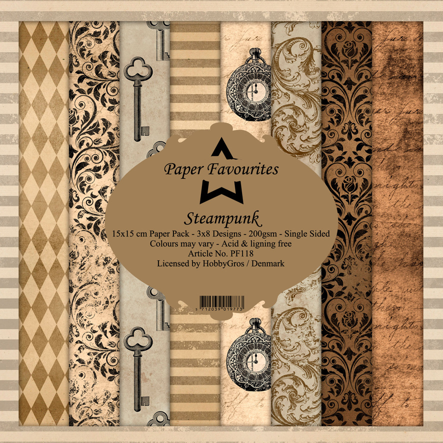 Steampunk paper pack - Mönstrade papper i brunbeige toner från Paper Favourites 15x15 cm