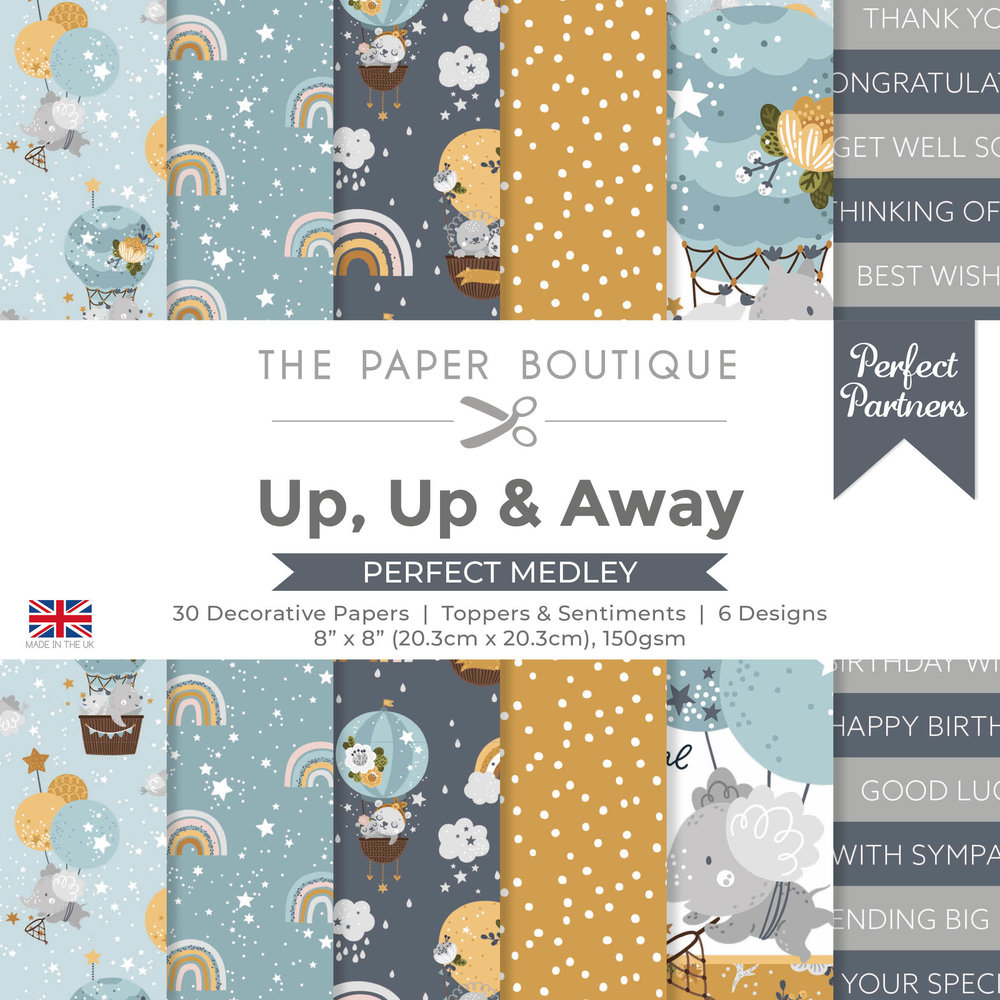 UP UP & AWAY Perfect Partners 8x8 Inch Decorative Papers - Mönsterpapper med restetema från The paper boutique 20x20 cm
