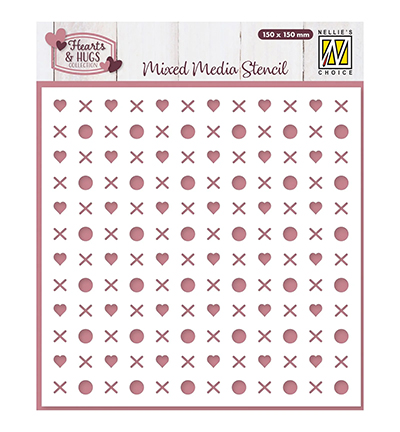 HUGS & KISSES stencil - Schablon med kärlekstema hjärta kryss från Nellie Snellen 15x15 cm