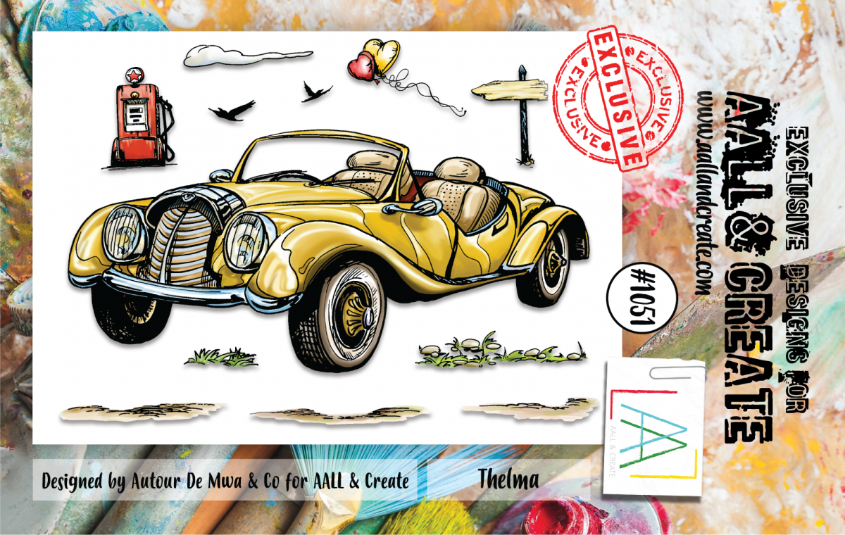 #1051 THELMA CAR clear stamp set - Stämpelset med bil från Autour de Mwa AALL & Create A7