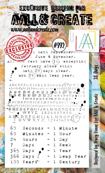30 DAYS time and date clear stamp set - Stämpelset med tid och dagar från AALL & Create A7