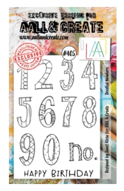 #405 Doodled numbers clear stamp set - Stämpelset med siffror från Janet Klein / AALL & Create A6