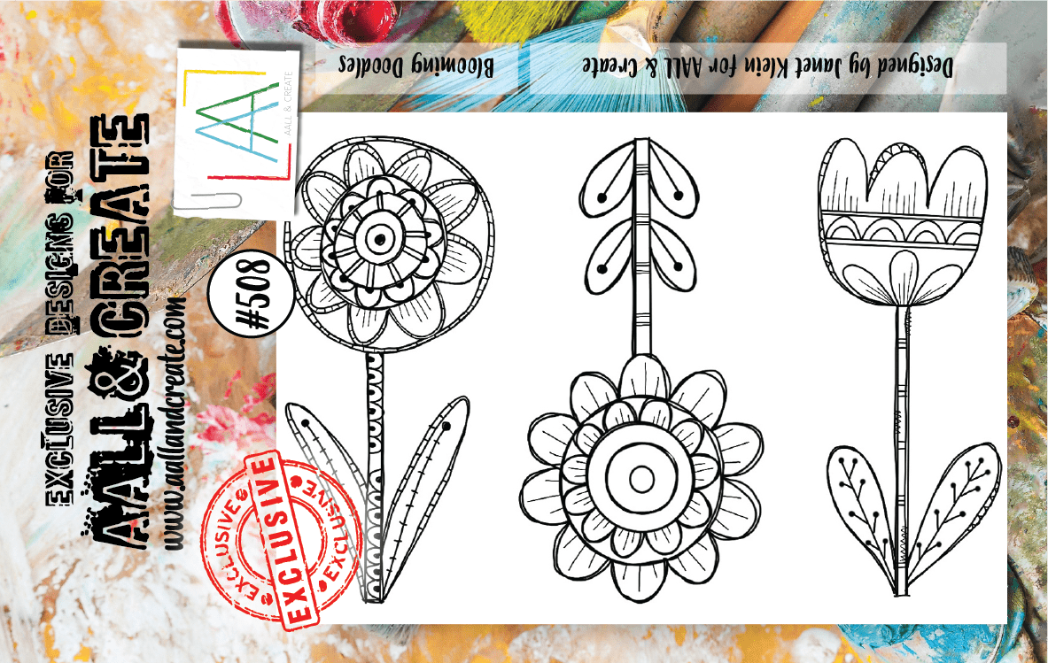 #508 Blooming doodles flower clear stamp set - Stämpelset med blommor från Janet Klein AALL & Create A7