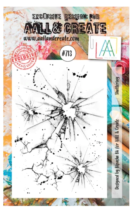 #713 Shattering cracked glass ice clear stamp set - Stämpelset med sprucket glas från Bipasha BK A7