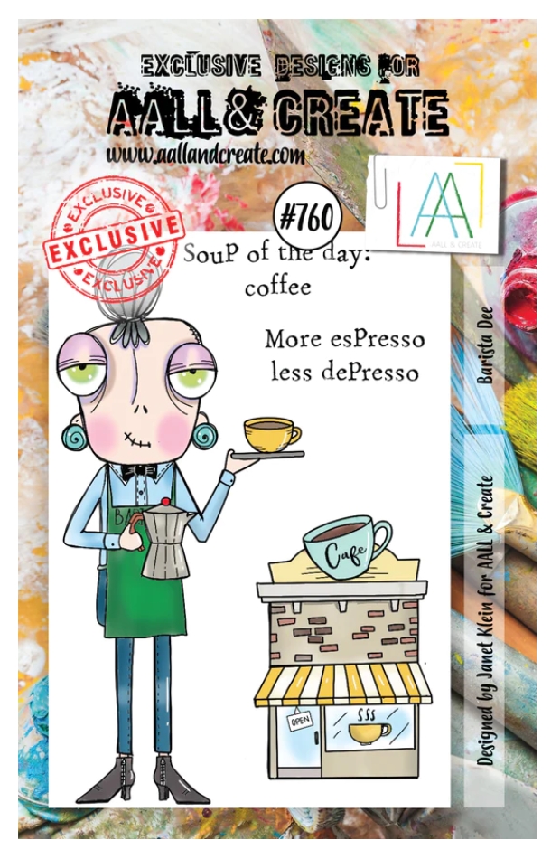 #760 Barista Dee coffee maker clear stamp set - Stämpelset med kaffetema från Janet Klein A7