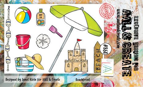#860 BEACHFRONT Stamp Set - Stämpelset med hav- och strandentema från Janet Klein AALL & Create A6