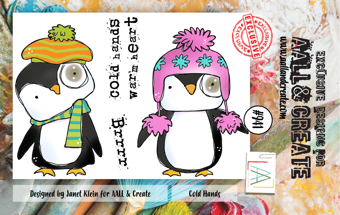 #941 COLD HANDS penguin clear stamp set - Stämpelset med pingviner från Janet Klein AALL & Create A7
