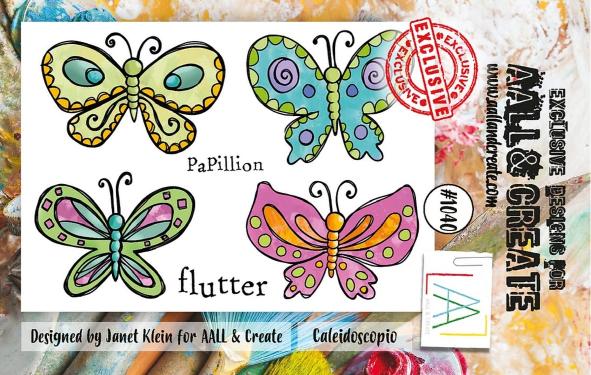 CALEIDOSCOPIO butterfly clear stamp set 1040 - Fjärilstämpelset från AALL & Create A7