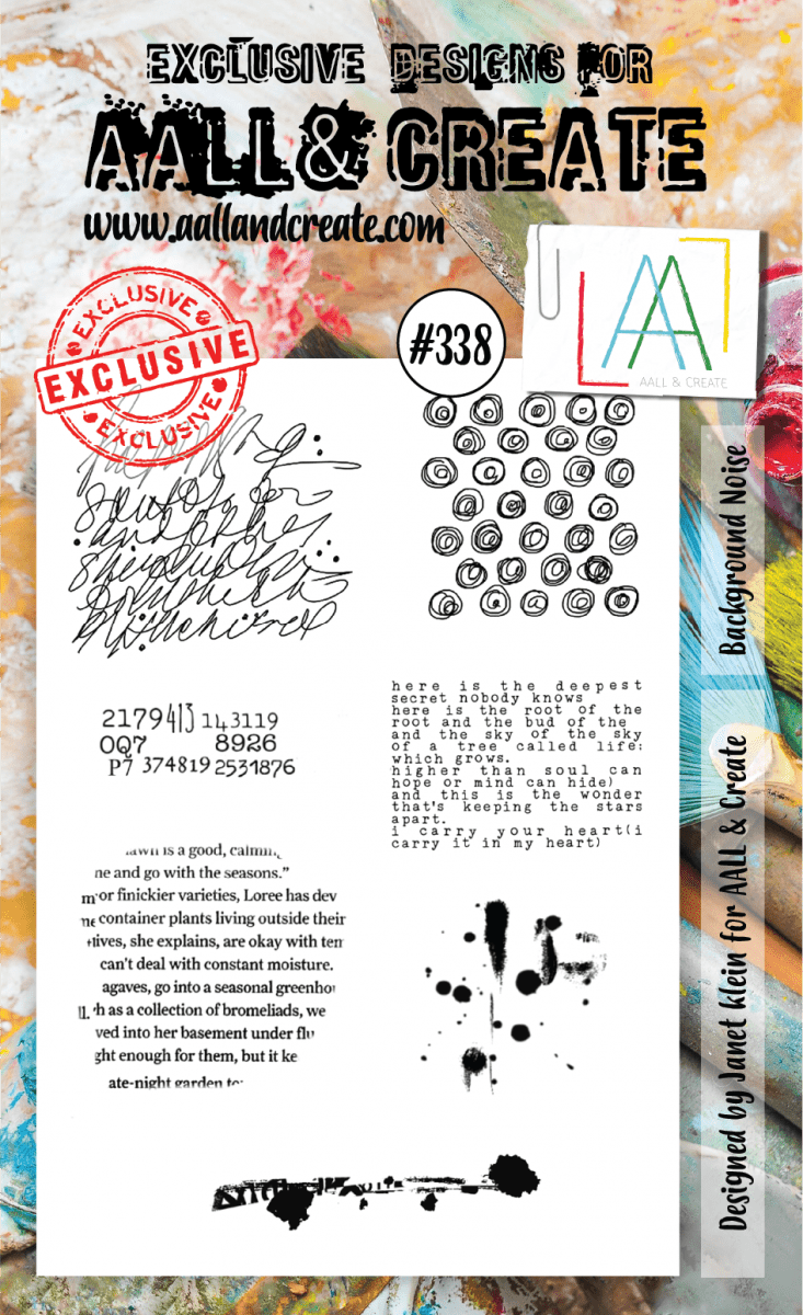 #338 Background noise clear stamp set - Stämpelset med text och textur från Aall & Create A6 Janet Klein