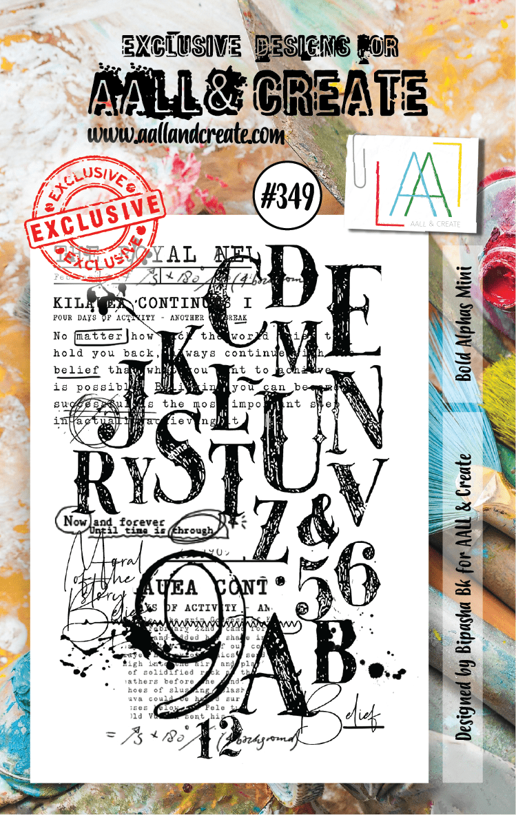 #349 Bold alphas mini clear stamp - Text- och bokstavsstämpel från Aall & Create A7 Bipasha BK.