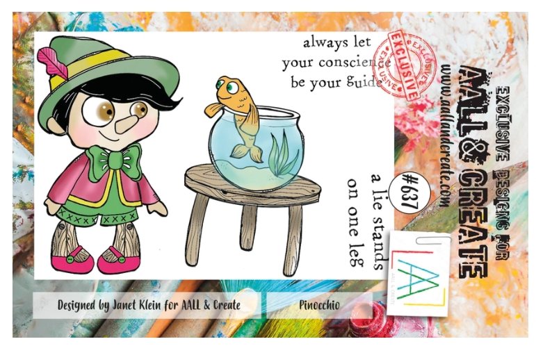#637 Pinocchio clear stamp set - Stämpelset med trädocka från Janet Klein AALL & Create A7