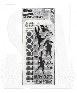 BUNNY HOP rabbit clear stamp and stencil set - Stämpel- och schablon med påsktema hare / kanin från Tim Holtz Stamper's Anonymous