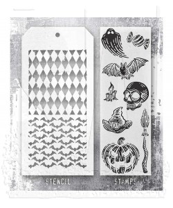 CARVED FRIGHTS HALLOWEEN STAMP STENCIL KIT - Stämplar och schabloner från Tim Holtz Stamper's anonymous