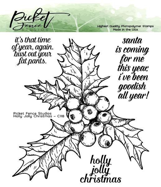 Holly Jolly Christmas 4x4 Inch Clear Stamp set - Stämpelset med järneksblad från Picket fence studios 10x10 cm
