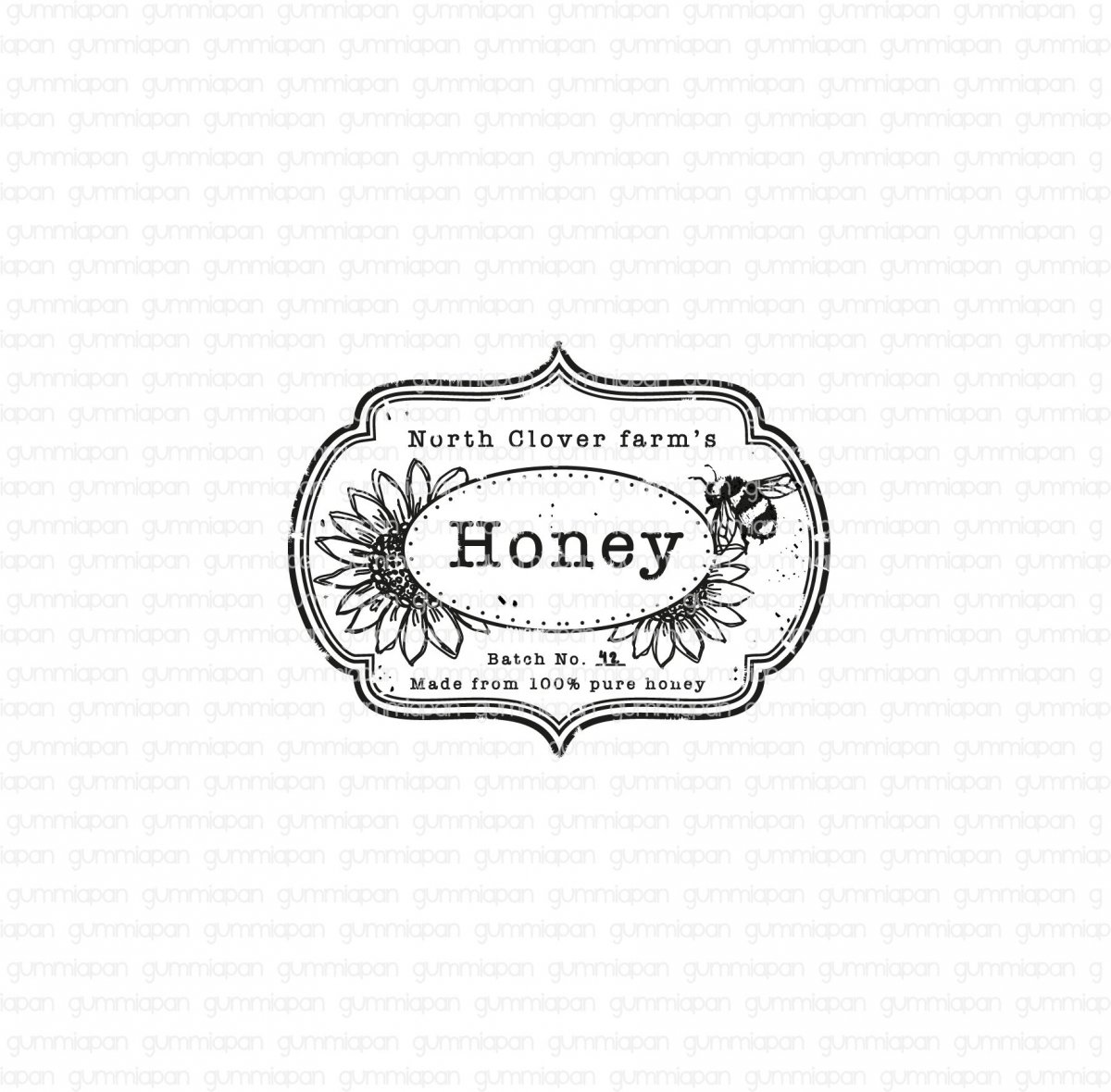 Liten etikett HONEY-stämpel från Gummiapan ca 37x30 mm