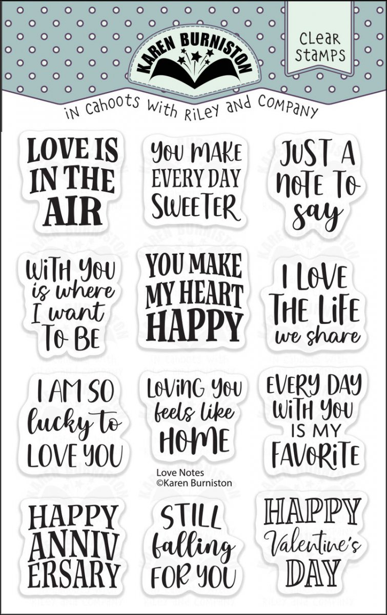 LOVE NOTES CLEAR STAMP SET - Stämpelset med engelska kärlekstexter från Karen Burniston
