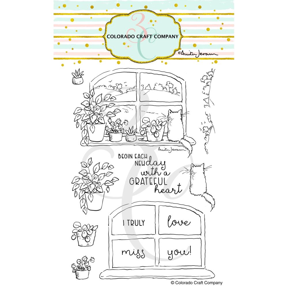 New day windowsill with cats clear stamp set - Stämpelset med katter och fönster från Anita Jeram Colorado Craft Company 10x15 c