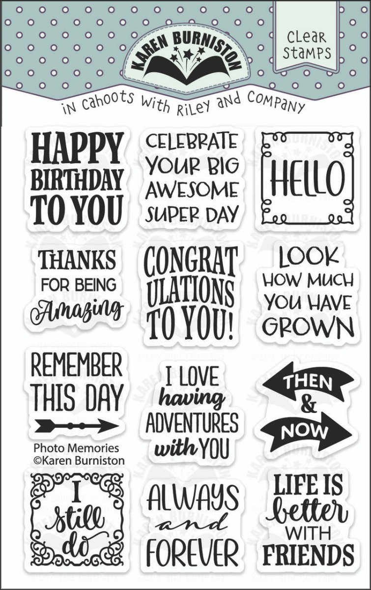 PHOTO MEMORIES clear stamp set - Stämpelset med engelska texter från Karen Burniston