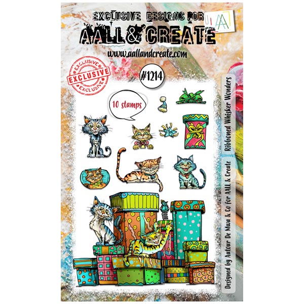 RIBBONED WHISKER WONDERS clear stamp set - Stämpelset med katter från Autour de Mwa AALL & Create A6