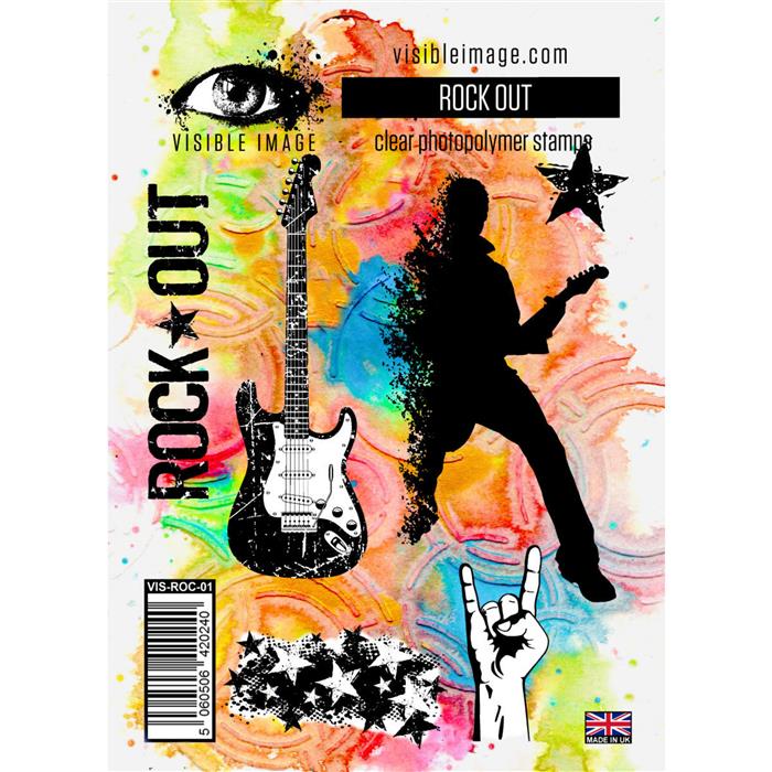 ROCK STAR clear stamp set - Stämpelset med musiktema från Visible image A6