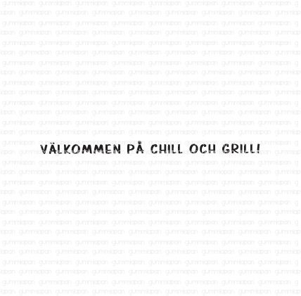 Välkommen på chill och grill-stämpel från Gummiapan ca 75x5 mm