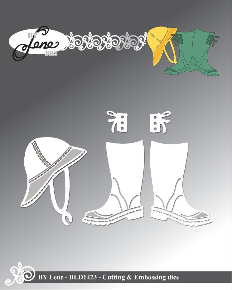Rubber Boots & Hat Cutting & Embossing Die set - Stansmallar med regntema från By Lene