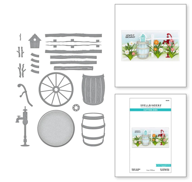 RUSTIC GARDEN Etched Dies - Stansmallar med trädgårdstema från Spellbinders