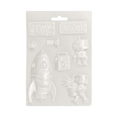 SPACE SHIP AND ROBOT soft mould - Gjutform med rymdentema från Stamperia A5