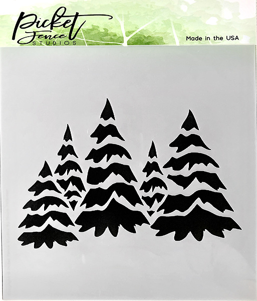 Field of snowy trees stencil - Schablon med snötäckta granar från Picket fence studios 15x15 cm