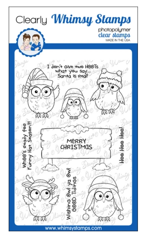 Christmas Hoo owl Clear Stamp set - Stämpelset med ugglor från Deb Davis / Whimsy Stamps 10x15 cm