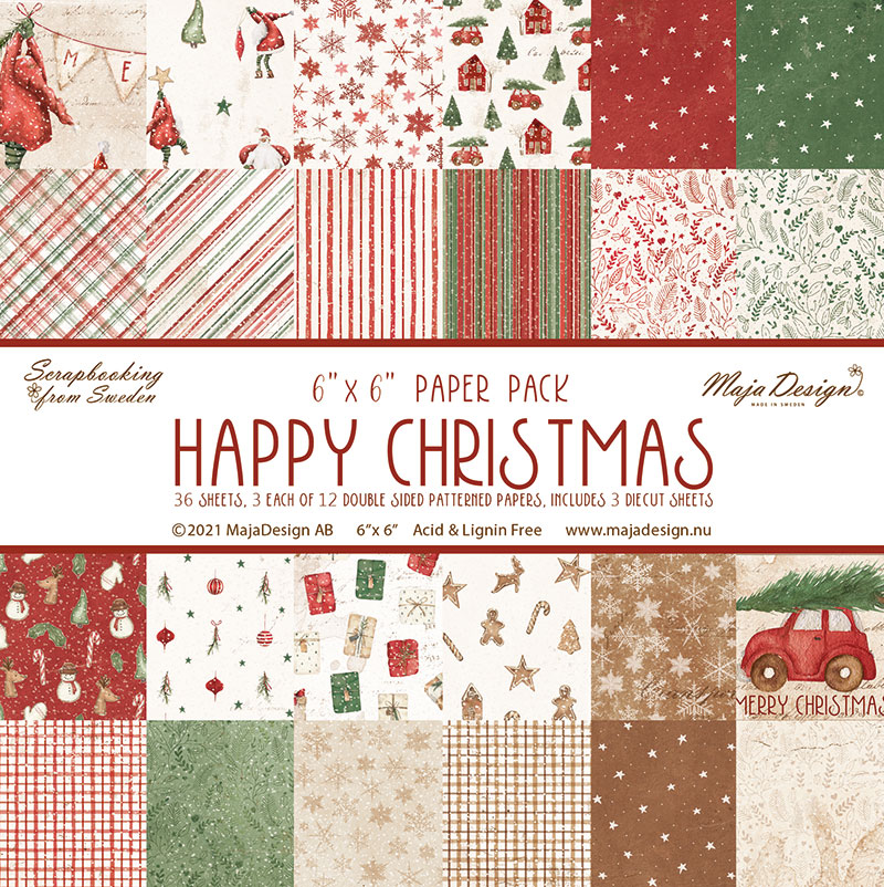 HAPPY CHRISTMAS paper pack 6x6 - Mönsterpapper med jultema från Maja Design 15x15 cm