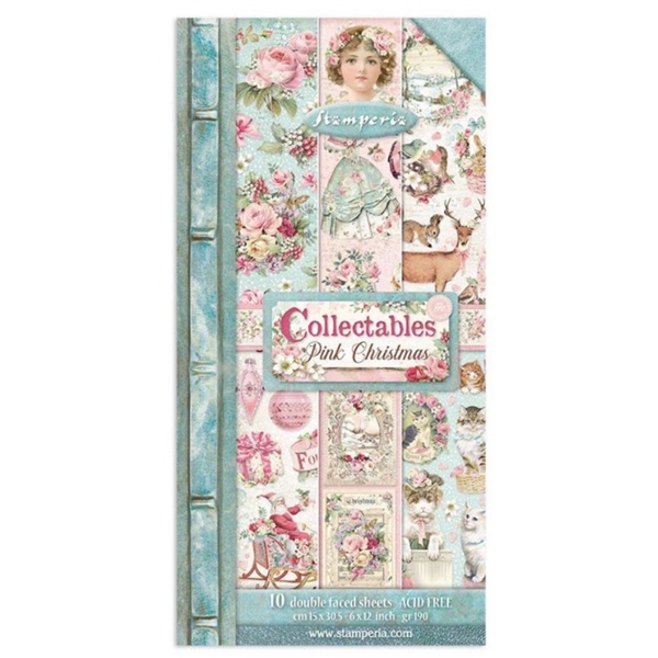 Pink Christmas 6x12 Inch Paper Pack - Mönsterpapper med jultema från Stamperia 15x30 cm