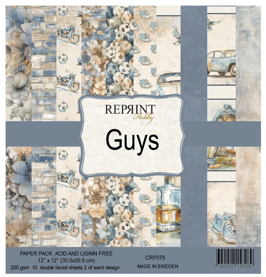 GUYS BOYS PATTERN PAPER PACK 12X12 - Mönsterpapper med pojk-/killtema från Reprint 30x30 cm
