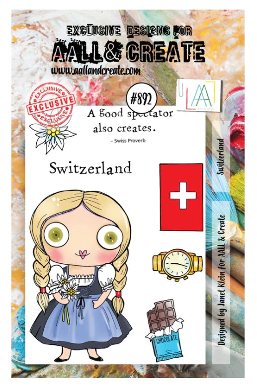 #892 SWITZERLAND girl clear stamp set - Stämpelset med Schweiztema från Janet Klein AALL & Create A7