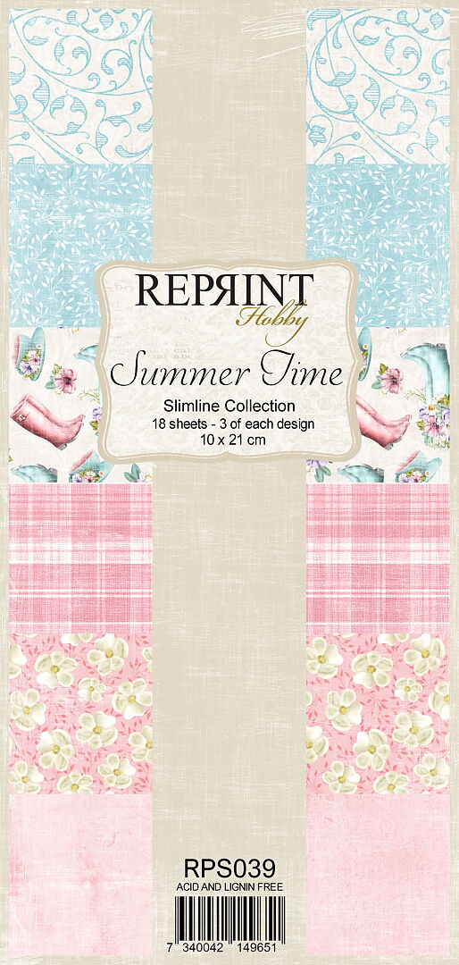 Summertime collection slimline paper pack - Mönsterpapper med sommartema från Reprint 10x21 cm