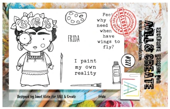 #377 Frida artist clear stamp set - Stämpelset med skapande tjej från Janet Klein / Aall & Create A7