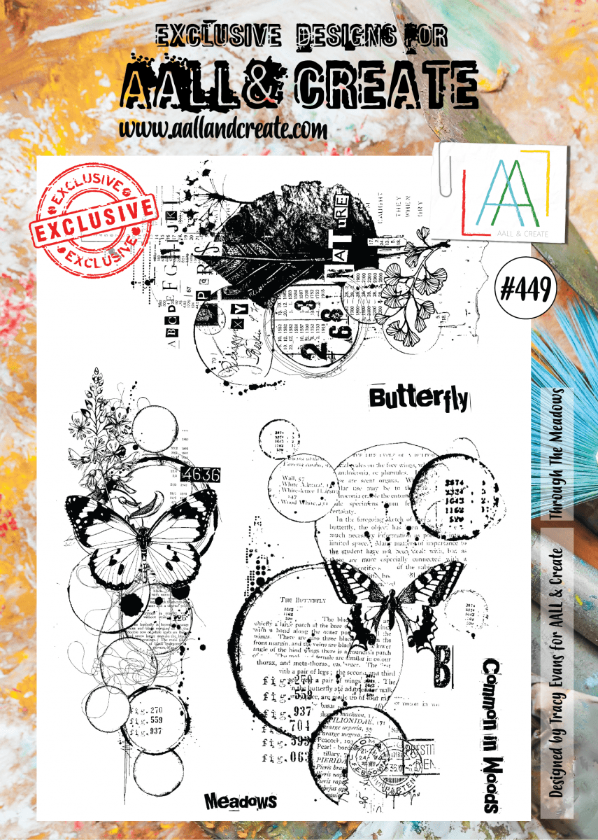 #449 Through the meadows butterfly clear stamp set - Stämpelset Tracy Evans AALL & Create A4