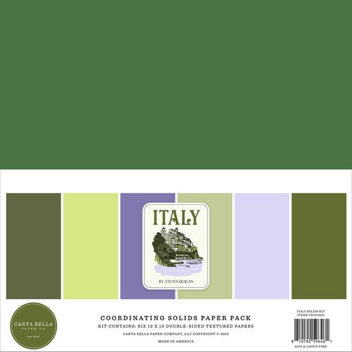 Italy Collection - 12 x 12 Paper Pack - Solids - Enfärgade papper till Italienserie från Carta Bella 30x30 cm