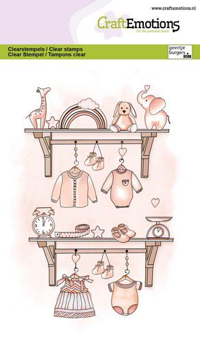 Baby shelf clear stamp set - Stämpelset med babytema från Craft Emotions A6