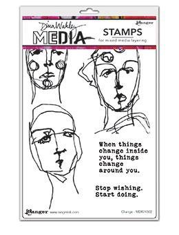 Change rubber stamp set - Stämpelset med ansikten och texter från Dina Wakley / Ranger ink