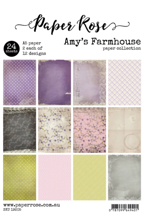 Amy's farmhouse paper stack - 24 st mönstrade papper från Paper Rose A5