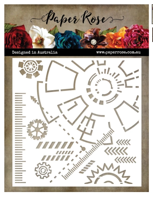 Industrial elements stencil - Schablon med kugghjul och industrikänsla från Paper Rose 15x15 cm