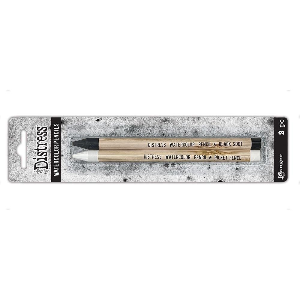 Tim Holtz Distress Watercolor Pencils Picket Fence & Black Soot (2pcs) - Svart och vit vattenfärgspenna från Tim Holtz Ranger