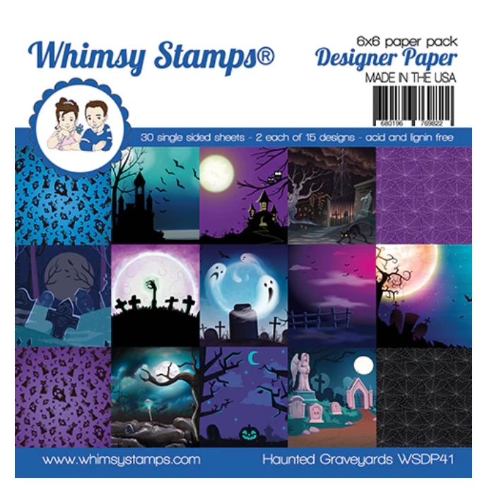 Haunted Graveyards paper pack 6x6 Halloween - Mönsterpapper med kyrkogårdstema från Whimsy Stamps 15x15 cm